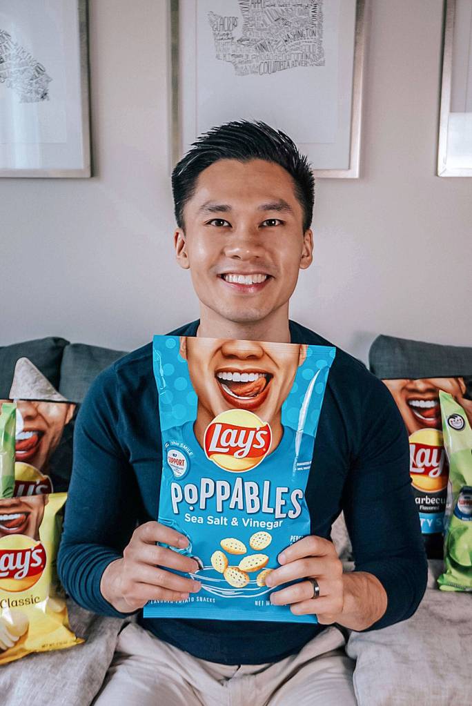 His joyful and toothy smile with a flash of tongue can be found on five Lay’s chips flavors including Lay’s Barbecue Party Size, Limon, Fried Pickles With Ranch, Poppables Sea Salt and Vinegar, and Classic small size.