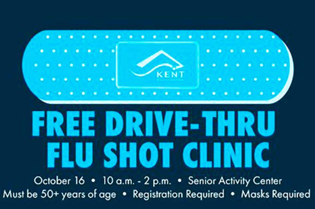 The city of Kent will offer free flu shots for seniors 50 and older at a drive-thru event from 10 a.m. to 2 p.m. on Friday, Oct. 16 at the Kent Senior Activity Center, 600 E. Smith St.