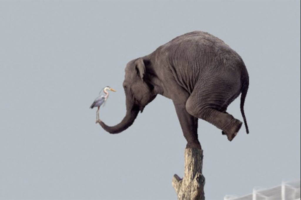 The proposed — and now scrapped — sculpture concept featured a tree as a base, drawing inspiration from Federal Way’s logging town heritage. A sprightly elephant is balanced on top of the tree on two front legs with a native great blue heron bird sitting atop the elephant’s trunk, looking at one another.