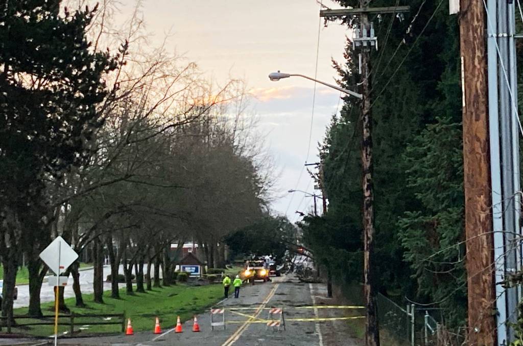 City crews closed South 240th Street from Russell Road at West Meeker Street to Lakeside Boulevard due to downed power lines, according to City Public Works staff. Crews also closed 132nd Avenue Southeast from Southeast 259th Place to Southeast 256th Street due to downed power lines blocking the roadway.