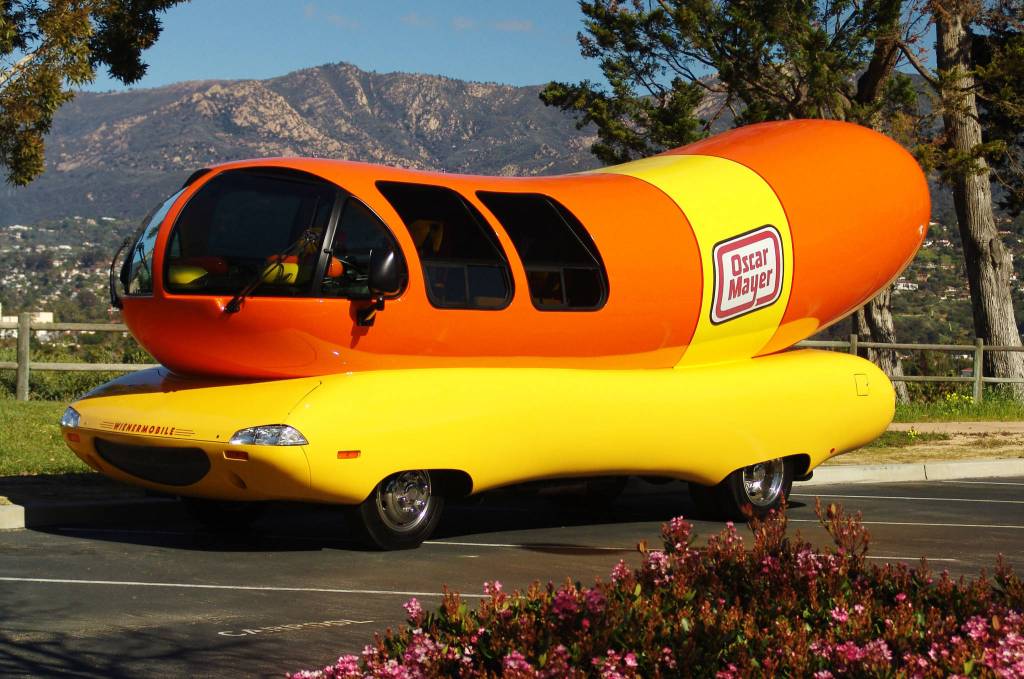Oscar Mayer staff encourages people to come take pictures, meat the Hotdoggers who drive this coast-to-coast wiener roast, take a peak under the bun and make sure you don’t leave without an iconic Wiener Whistle. The West Team drivers feature the nicknames of Tommy Salami and Niener Wiener. Although the Wienermobile promotes Oscar Mayer products, no food is served.