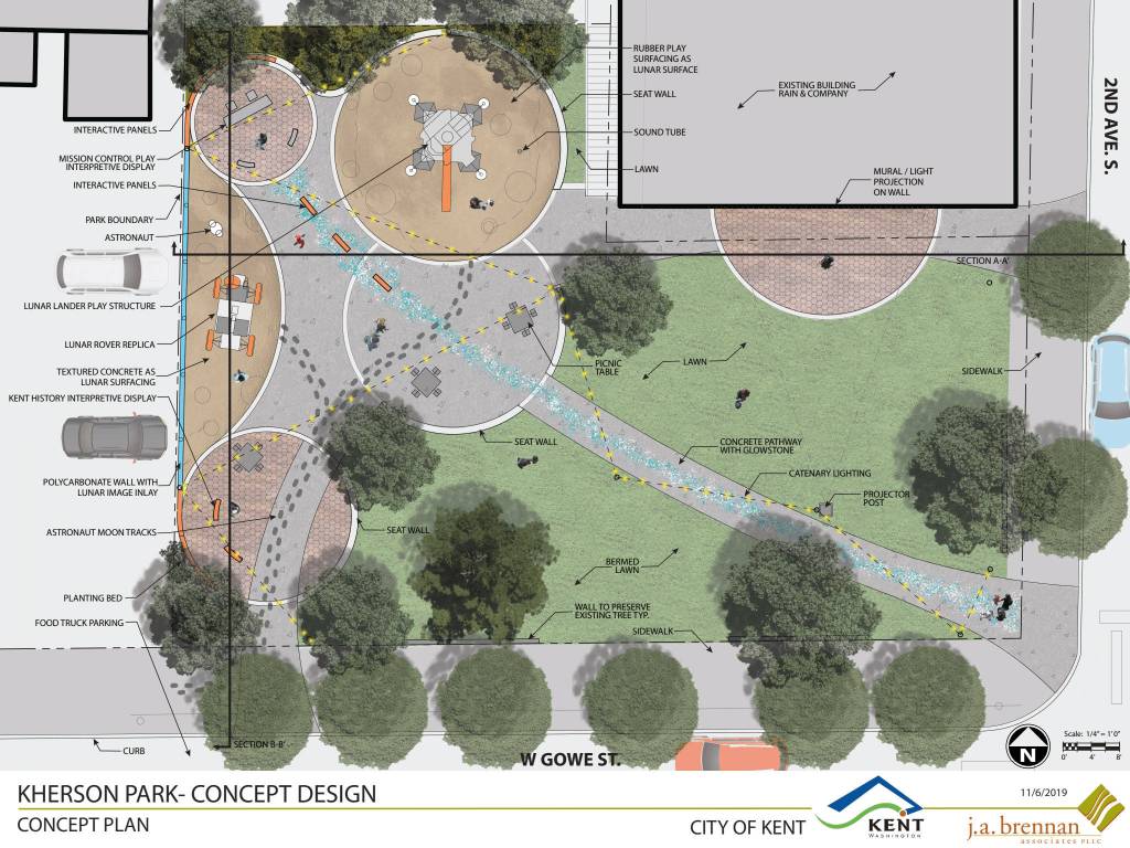 A shared goal among the city of Kent, the Kent Downtown Partnership (KDP) and consulting firm OLI Communications could lead to the development of a space-themed park in downtown Kent.