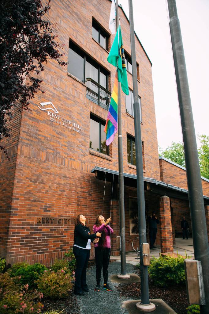 Mayor Dana Ralph declared June as Pride Month in the city of Kent at the June 1 City Council meeting. The two councilmembers raised the flag June 14 to be flown June 14-20.