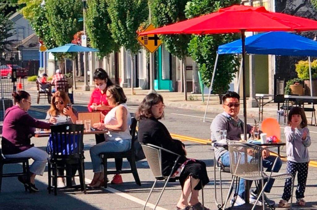 People dine outside in downtown Kent in 2020 along First Avenue between Gowe and Titus streets. COURTESY FILE PHOTO, Kent Downtown Partnership