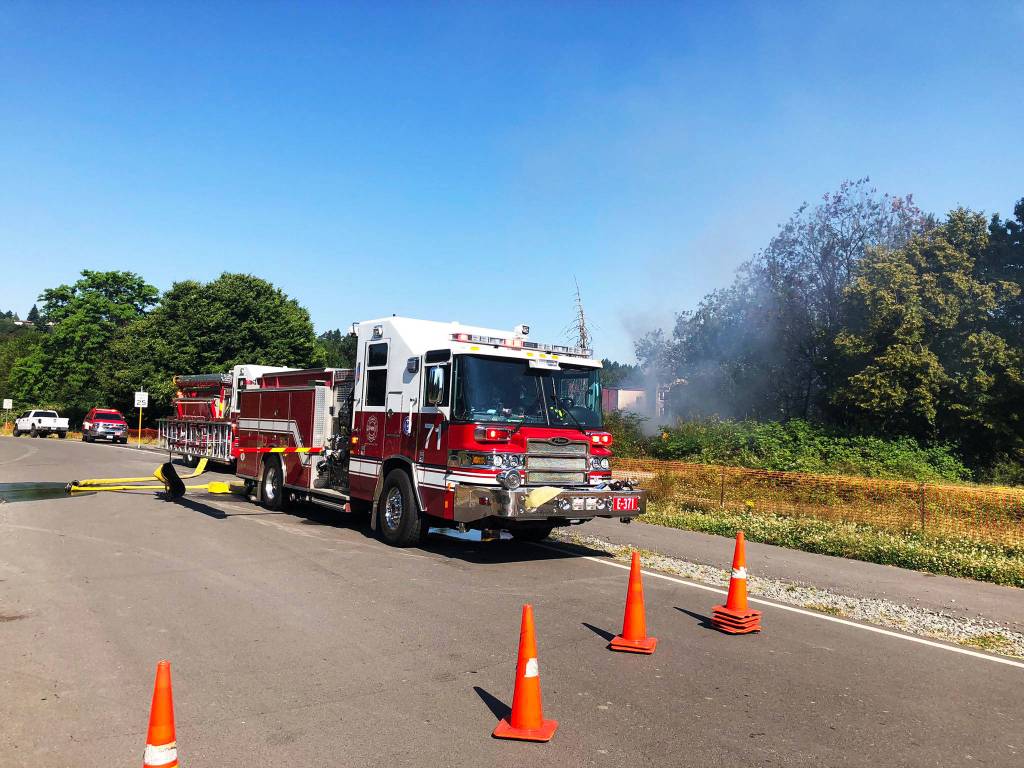 Firefighters were dispatched at about 9:13 a.m. to a tree fire near the Peck Bridge and the Old Fishing Hole, according to Capt. Joe Root, spokesperson for Puget Sound Fire. The fire was about 1 mile south of West Meeker Street.