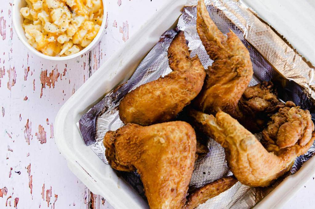 The entrees include fried chicken, pork chops, fried shrimp and catfish. The sides include candied yams, potato salad, mac & cheese, cabbage, string beans and collard greens.