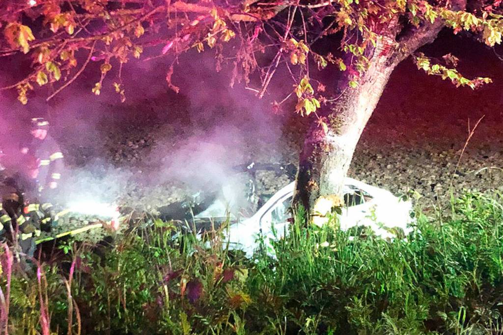 A photo released by Puget Sound Fire showed a car crashed into a tree. Puget Sound Fire also reported that East Valley Highway was closed after the crash between South 266th Street and South 277th Street.