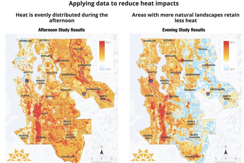 “That heat mapping campaign helped us get a better sense of how temperatures can vary across King County based on differences in land use, land type and geography,” Whitely Binder said. “The information really gave us a better visual of what we refer to as the urban heat island effect and can help inform where and how what types of heat mitigation strategies we may want to employ to help reduce temperatures in those areas.”
