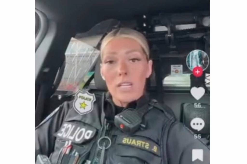 Officer Breanna Straus is seen sitting inside a vehicle while in uniform in the video. Straus urges people to move out of the way when officers are driving behind them.