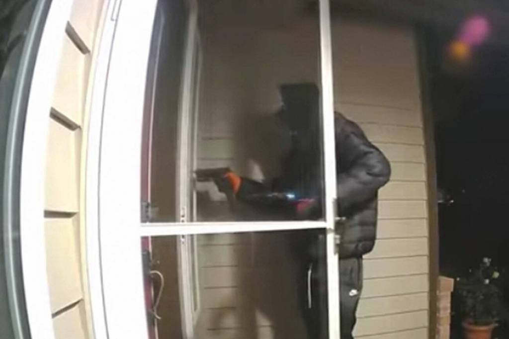 The suspect showed a handgun at their window but the residents did not allow him inside, according to the department. The suspect then proceeded to tear the Ring camera from the wall, video shows.