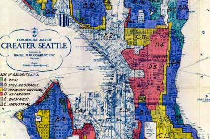 Historic map of Seattle’s redlined districts. (Screenshot from HistoryLink.org)