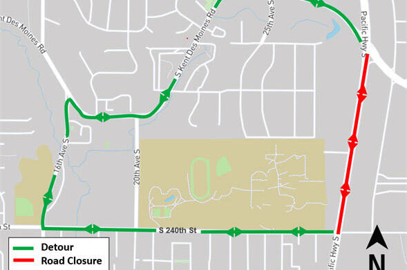Sound Transit has postponed its planned overnight closure of Pacific Highway South in Kent for construction work Nov. 19-20 between State Route 516 and South 240th Street.