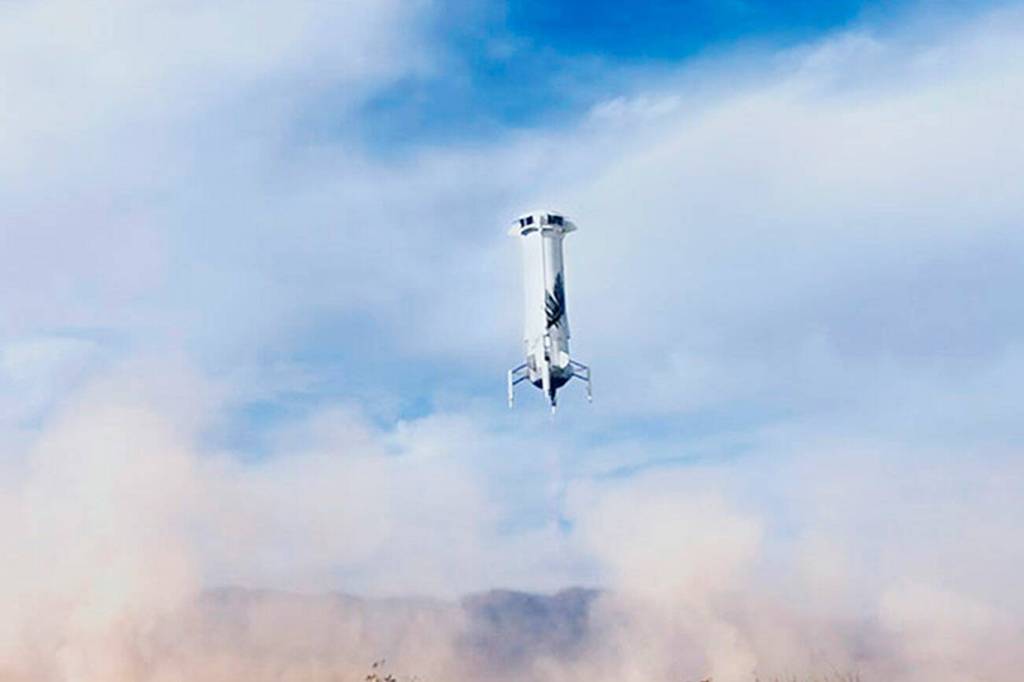 Blue Origin’s New Shepard booster landing in West Texas on Dec. 19. COURTESY PHOTO, Blue Origin