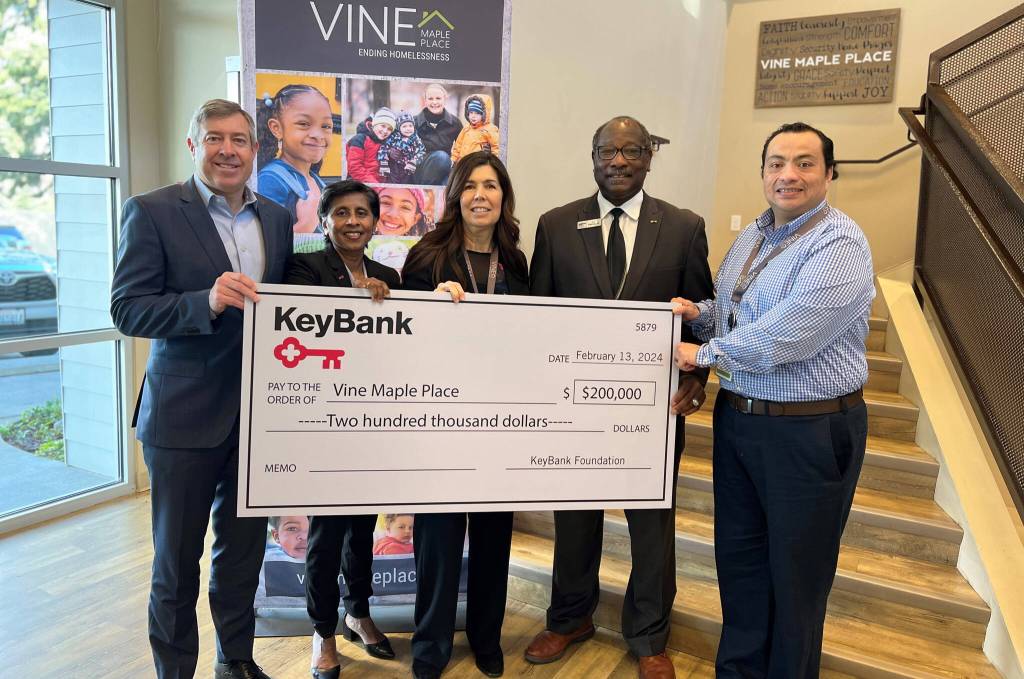 Vine Maple Place, with centers in Kent and Maple Valley that help families who are homeless, received a $200,000 grant from KeyBank.