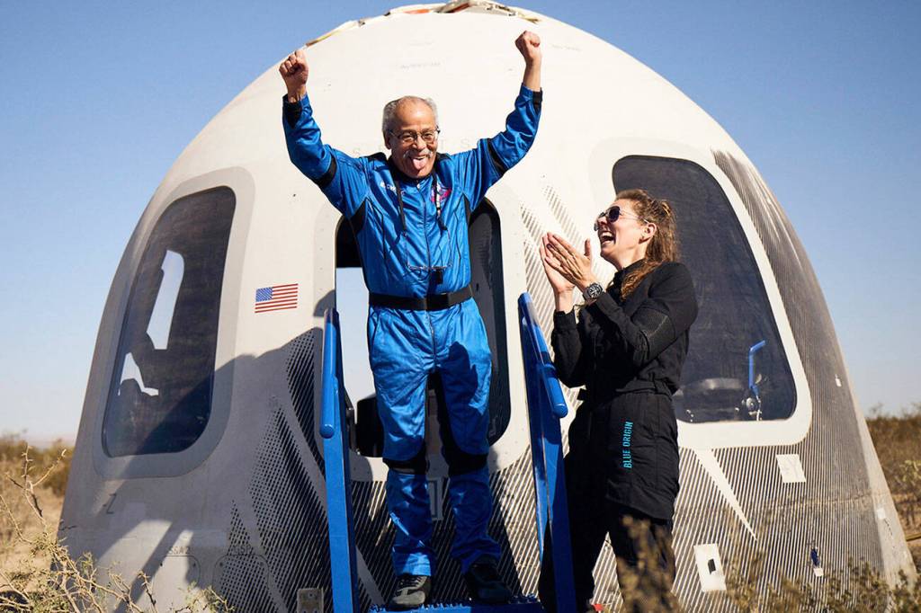 While Dwight’s flight was sponsored, the others paid a fee after filling out an application. Blue Origin does not release the price paid by crew members.