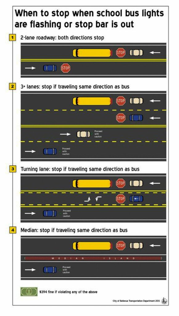 With school back in session and buses on the road to pick up or drop off children, here’s a reminder about the rules of the road for stopped school buses: