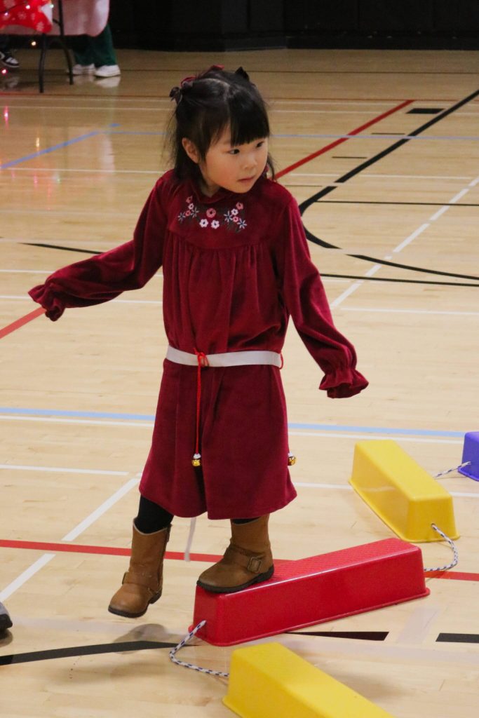 Different stations included a craft station, a giant snowball roll, pin-the-nose-on-the-reindeer, bow pickup, freeze dance, snowball free-throw, and the most difficult station, which tested the elf cadets’ stealthiness: Don’t Wake the Elf. With a sleepy head elf tucked into bed, the cadets have bells attached to their waists, and they must go through a small obstacle course without making a sound.