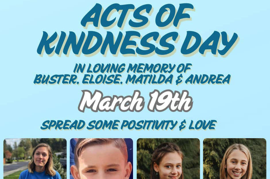 On Wednesday, March 19, the families of Andrea Hudson, Buster Brown, Eloise Wilcoxson and Matilda Wilcoxson invite people in the Renton and Kent communities (and beyond) to honor them by spreading “love, kindness and positivity just like they did in their short but impactful lives.”