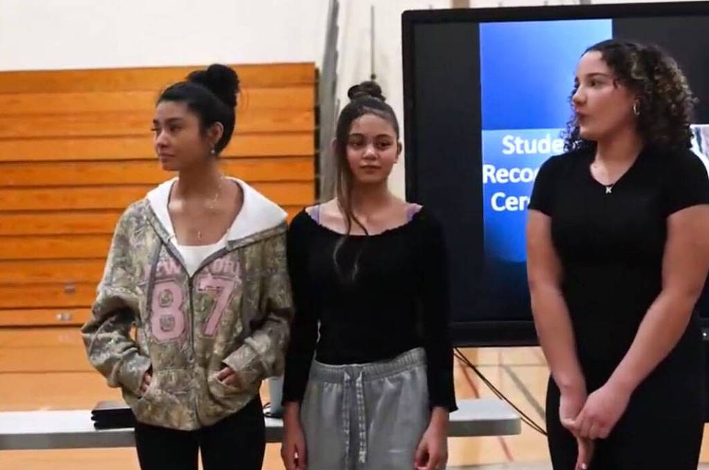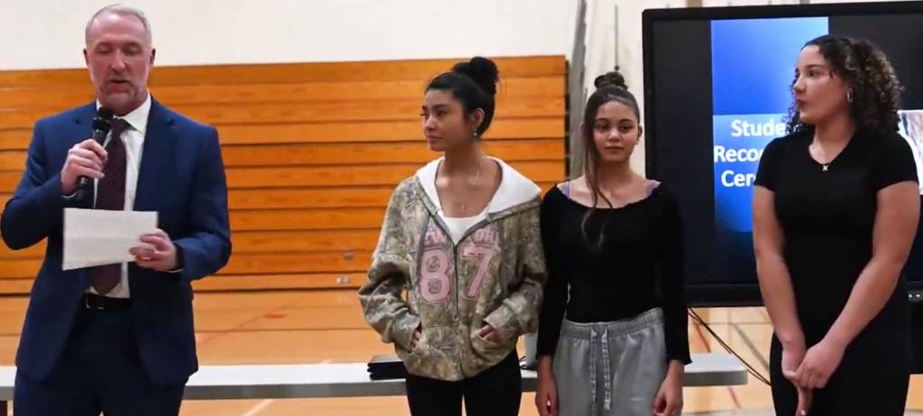 Bentley Hendrickson, Esme Munguia and Kylie Love received the certificates from Steve Vienneau, a Seattle FBI supervisory special agent. The girls received the Kent Police Chief’s Award for Citizen Commendation at a Sept. 17, 2024 City Council meeting. 0