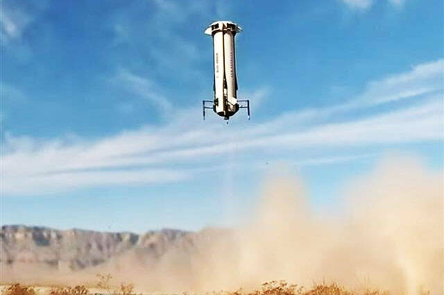 Blue Origin’s New Shepard booster nears touchdown Feb. 4, 2025 in Texas during the NS-29 flight. COURTESY PHOTO, Blue Origin