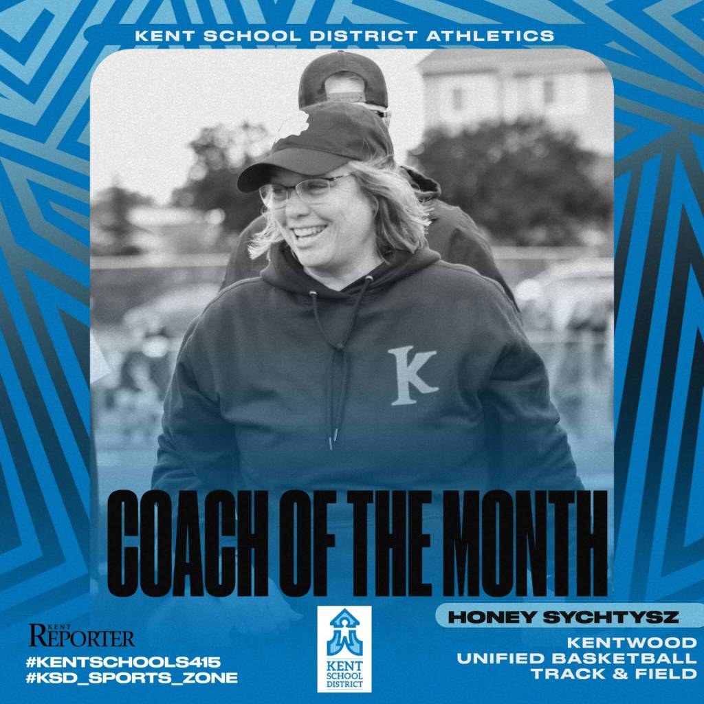 The Kent Reporter Coach of the Month is Honey Sychtysz from Kentwood. Sychtysz coaches unified basketball as awell as track and field for the Conks.