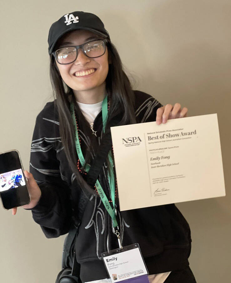 Emily Fong displays her award and winning photo. COURTESY PHOTO, Kent School District
