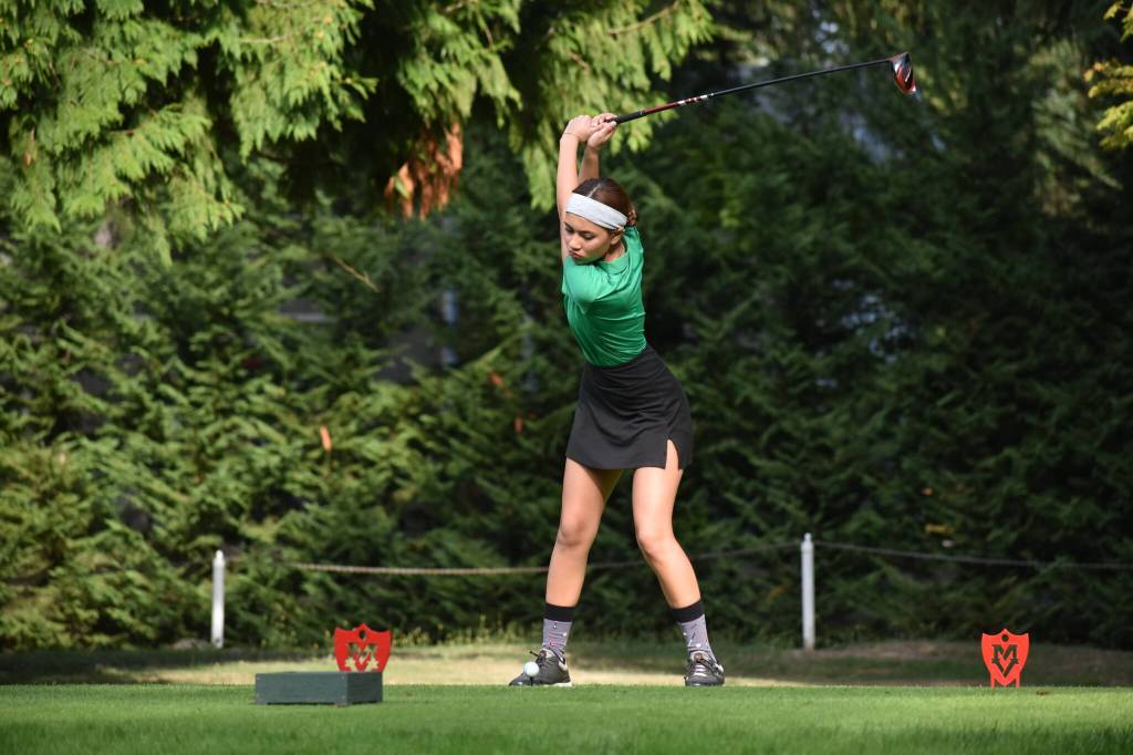 Isabelle Nguyen tees off on the par three at Meridian Valley. Ben Ray / The Reporter