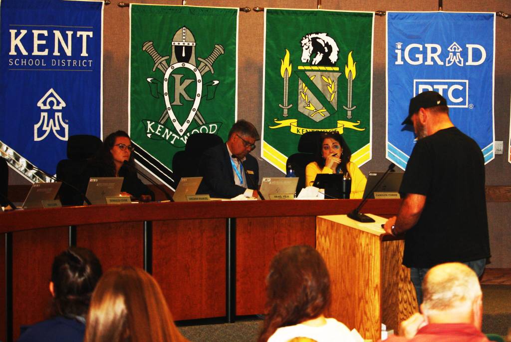 “The superintendent showed he was unwilling to represent the entire Kent community,” Frey said. “I ask for him to resign or the board move forward in removing him.”