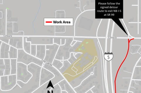 Drivers can follow the detour route to exit at State Route 99 and Kent Des Moines Road.
