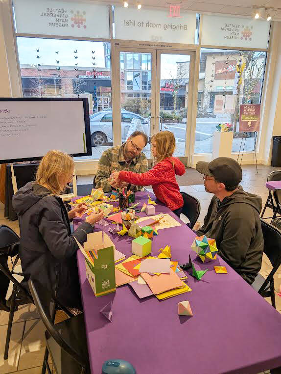 Each Saturday and Sunday, the organization offers the Seattle Universal Math Museum Studio from 3 to 4:30 p.m., an add on experience where its educators facilitate a guided activity.