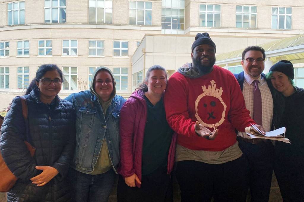 The D’Andre Glapsy defense team, from left to right: Attorney Anna Samuel, investigator Emily Willard, social worker Alix Willard, D’Andre Glaspy, attorney Michael Schueler and investigator Molly Gilbert. COURTESY PHOTO/Michael Schueler