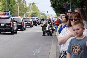 People line the streets of Kent to view the procession for Officer Diego Moreno, who was killed in…