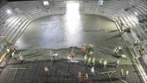 The Kent Events Center reached a milestone Tuesday with the pouring of its concrete floor.