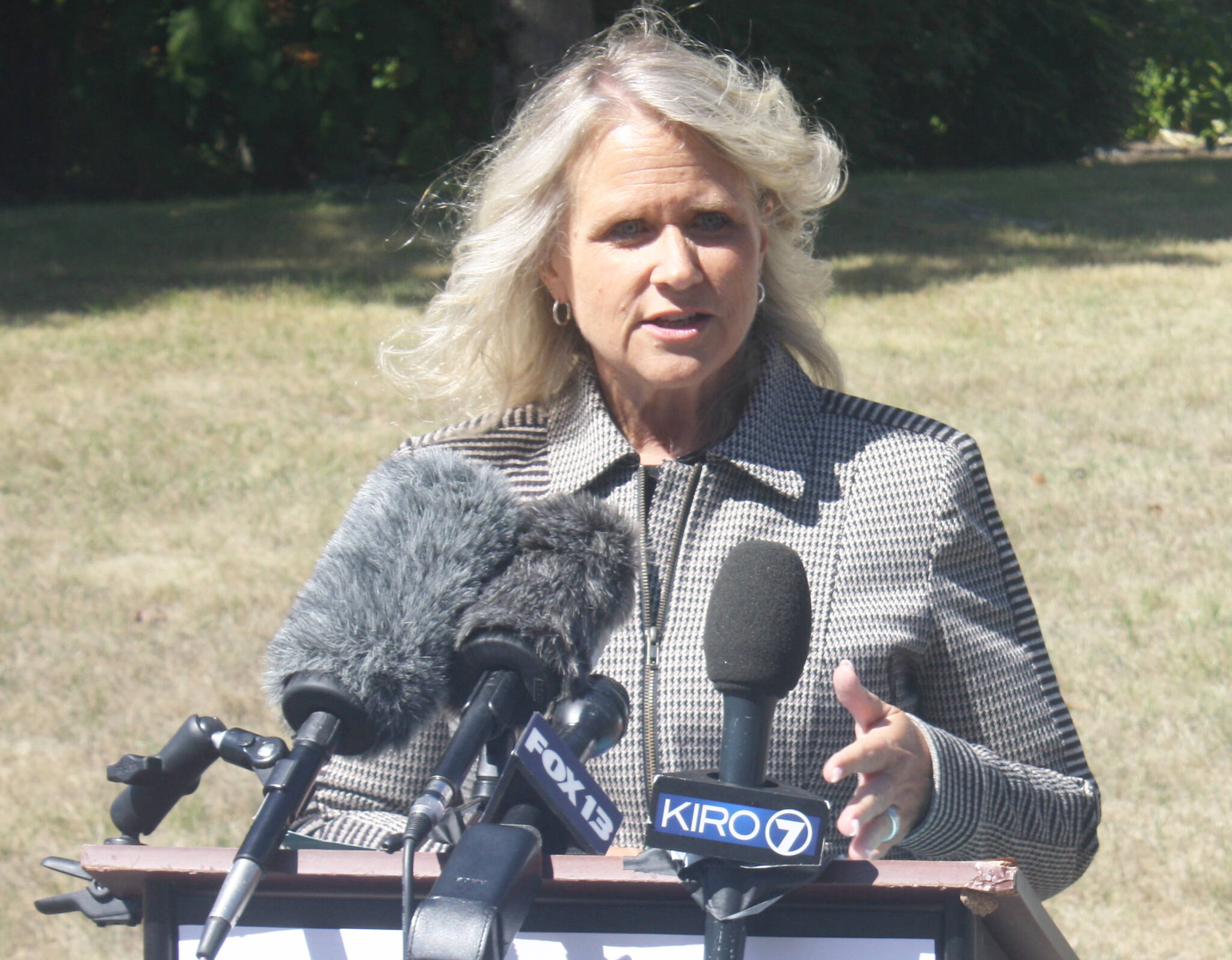 Former King County Sheriff Sue Rahr spoke at the press conference, sharing her background about fighting retail theft.