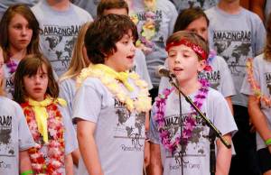 Summer Choir campers Astrid and Arwen Forsythe, Samuel Molinas and Carter Harrison, perform in the August concert. COURTESY PHOTO, Heather Rutledge