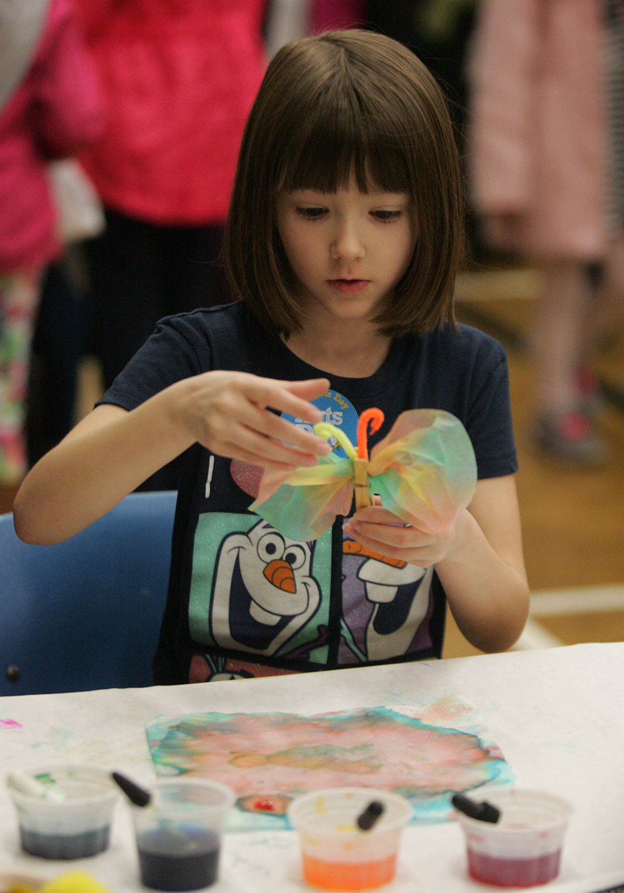 Aubrey Sidwell,7, an Emerald Park Elementary student, makes a butterfly during the Kent Kids’ Arts Day event. DENNIS BOX, Reporter
