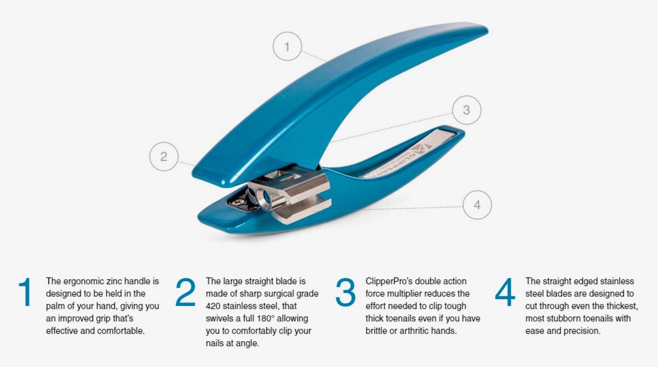 This is undoubtedly the best nail clipper on the market. ClipperPro Omega is not just your average nail tool, and orthopedic surgeons designed this revolutionary nail cutter. This very fact sets it apart from the rest of the nail cutters available today.