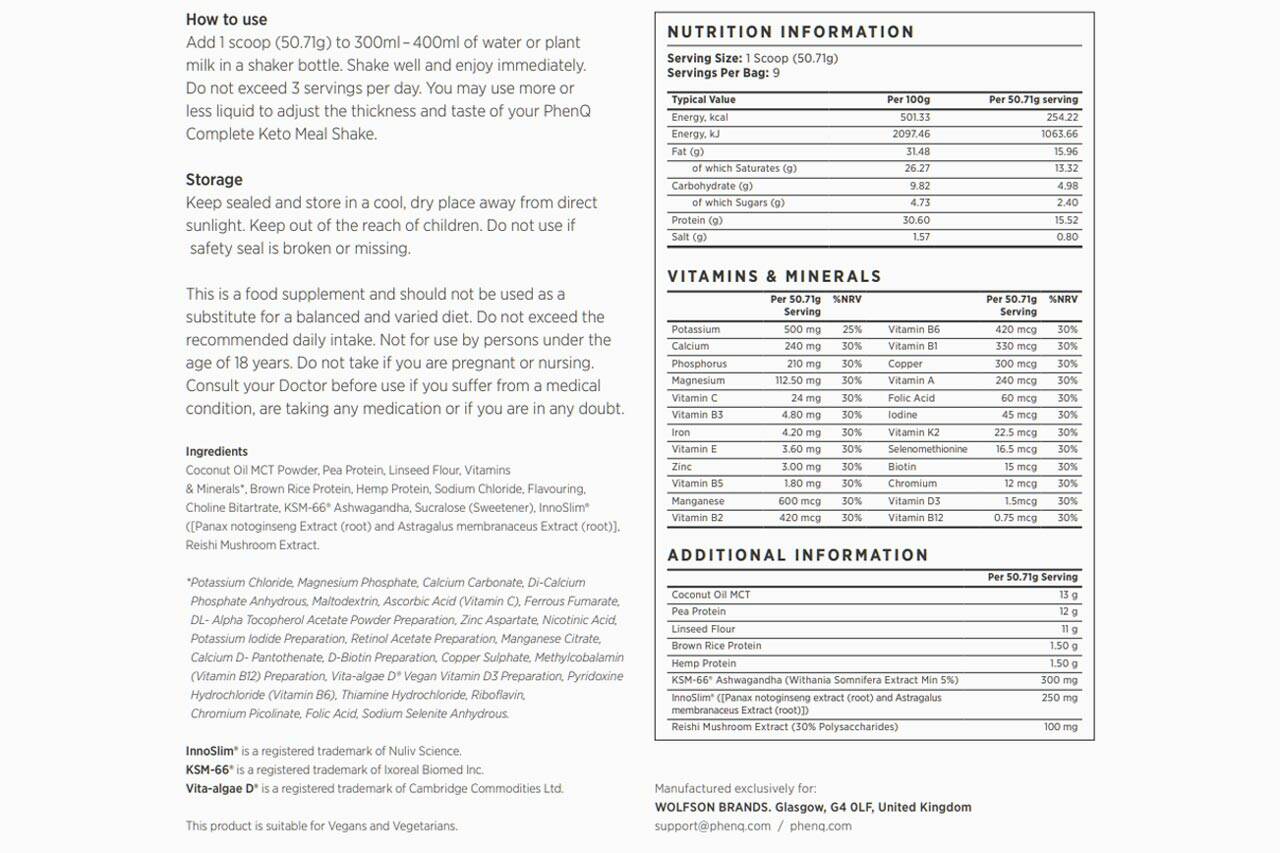 PhenQ Complete Meal Shake Ingredient List