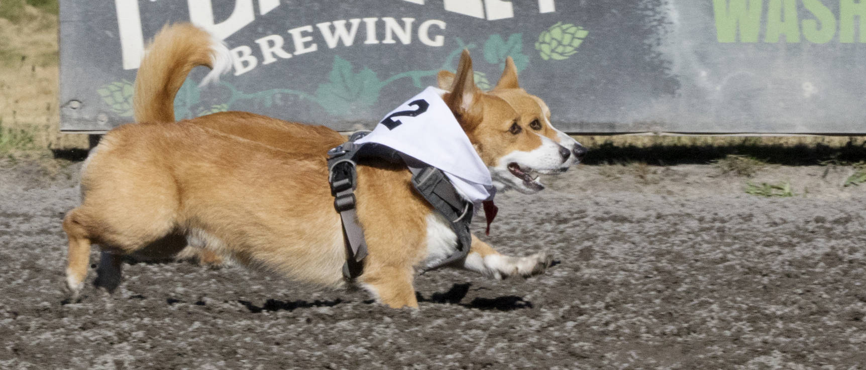 Emerald Downs didn’t allow any wagering on the Corgi Races. The names of the dogs included Ringo Starr, Tesla, Foxy Roxy, Guinness, Waffle, Russell Wilson and Shorty.