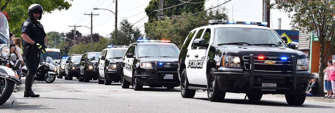 Hundreds of people lined the streets of Kent late Tuesday morning to honor fallen Kent Police Officer Diego Moreno as officers and firefighters from departments near and far led a large procession to the accesso ShoWare Center.