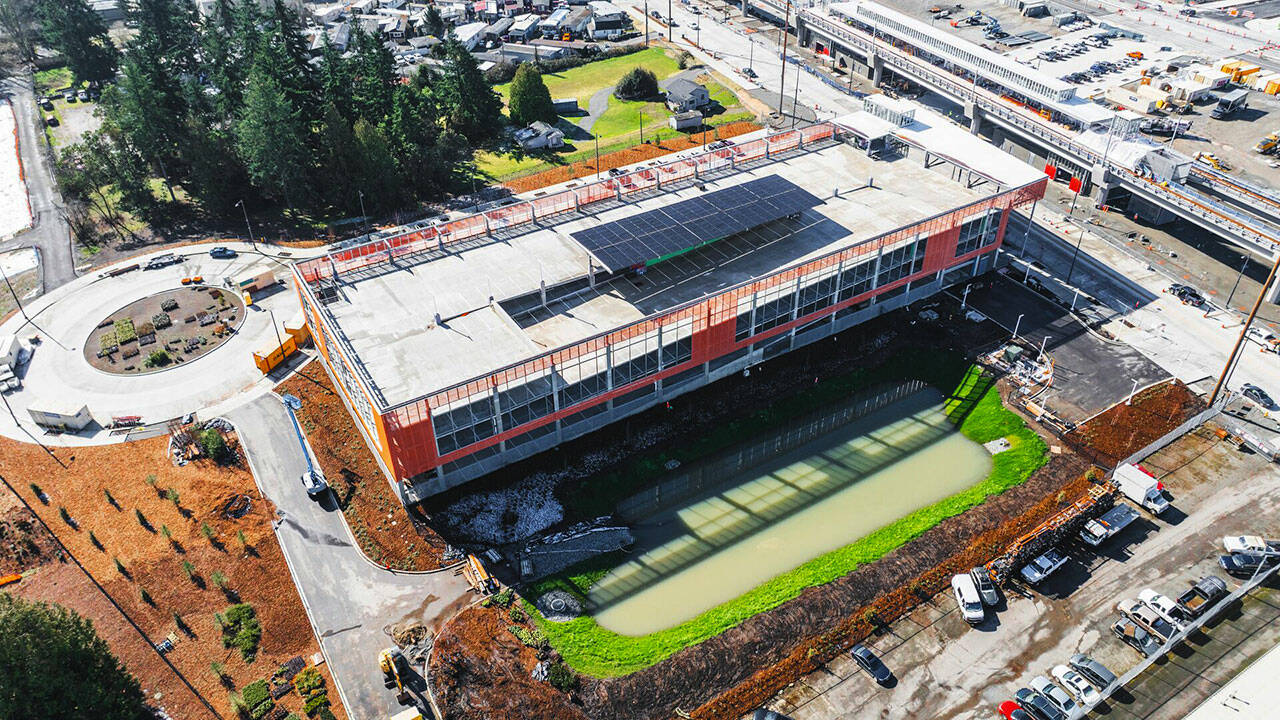 The Federal Way Downtown Station at South 320th Street is 75% complete, with extensive work to do on interior and exterior elements. The Federal Way garage, with 400 spaces, is 63% finished.