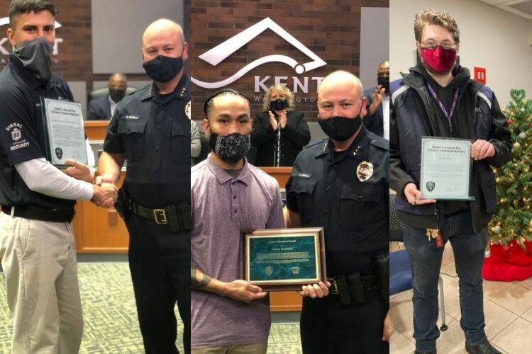 Several residents were recently recognized by Kent Police Chief Rafael Padilla with awards for their bravery and being a good Samaritan.
