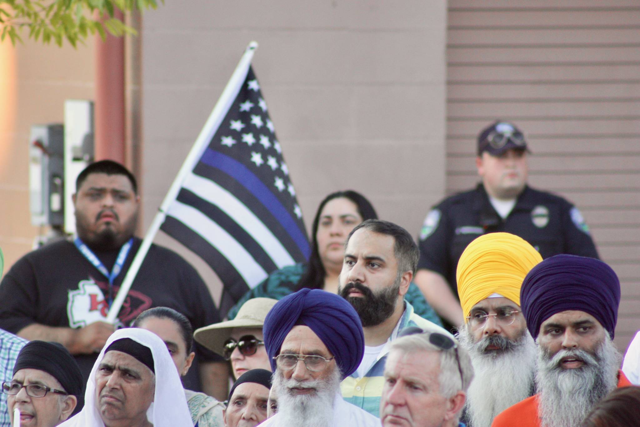 The vigil included prayer and song, speakers and a candle-lit moment in honor of Officer Moreno on an evening in which the crowd tucked into the shade of the plaza, a respite from the day’s heat.
