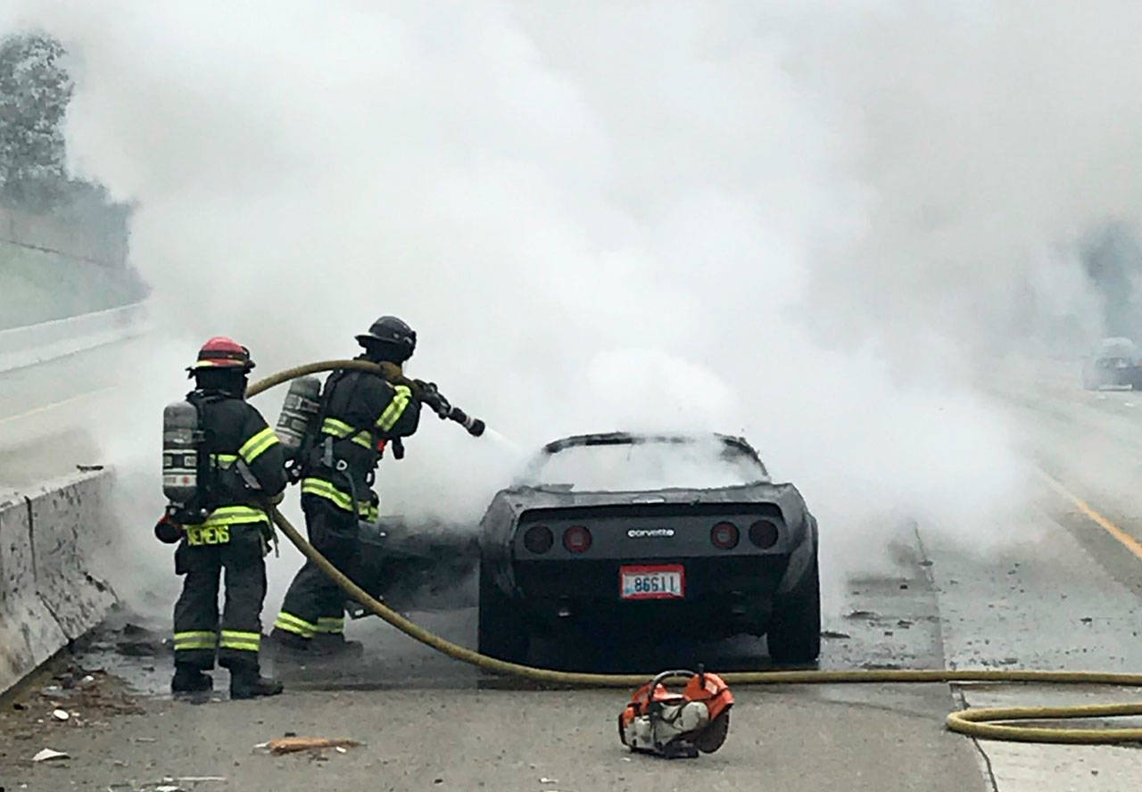 Photos posted by Puget Sound Fire showed flames and smoke going up from a Corvette on the side of the freeway before firefighters extinguished the fire. There were no reports of any injuries. Puget Sound Fire did not have any details about how the fire started.