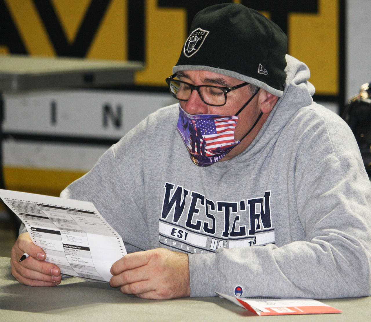 Once voters received their ballots, they spread out a tables on the arena floor to fill out the ballots.
