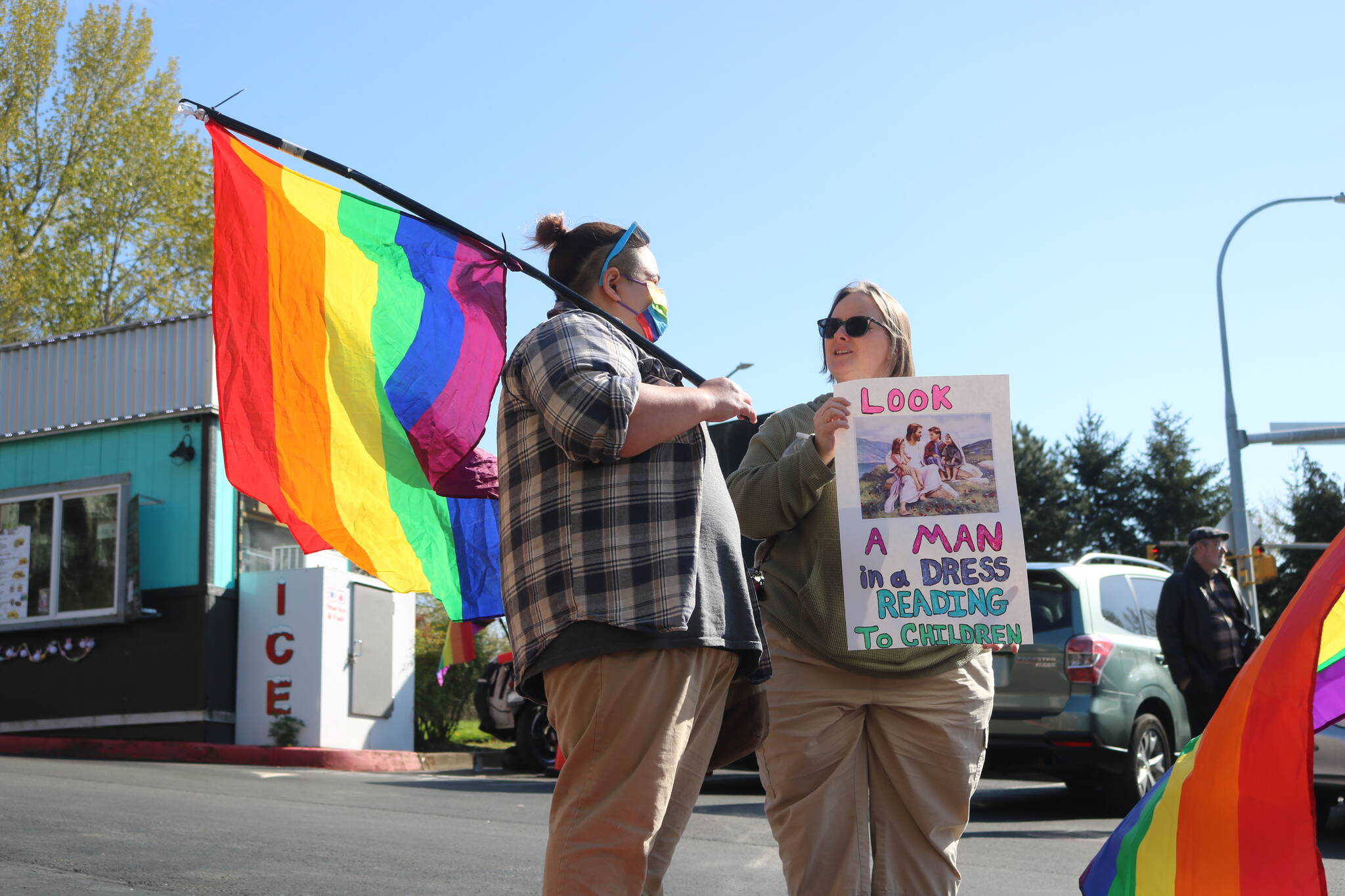 It was all sunshine, rainbow flags, loud dance music and positive signs on April 12 in the parking lot outside The Brewmaster’s Taproom in Renton.