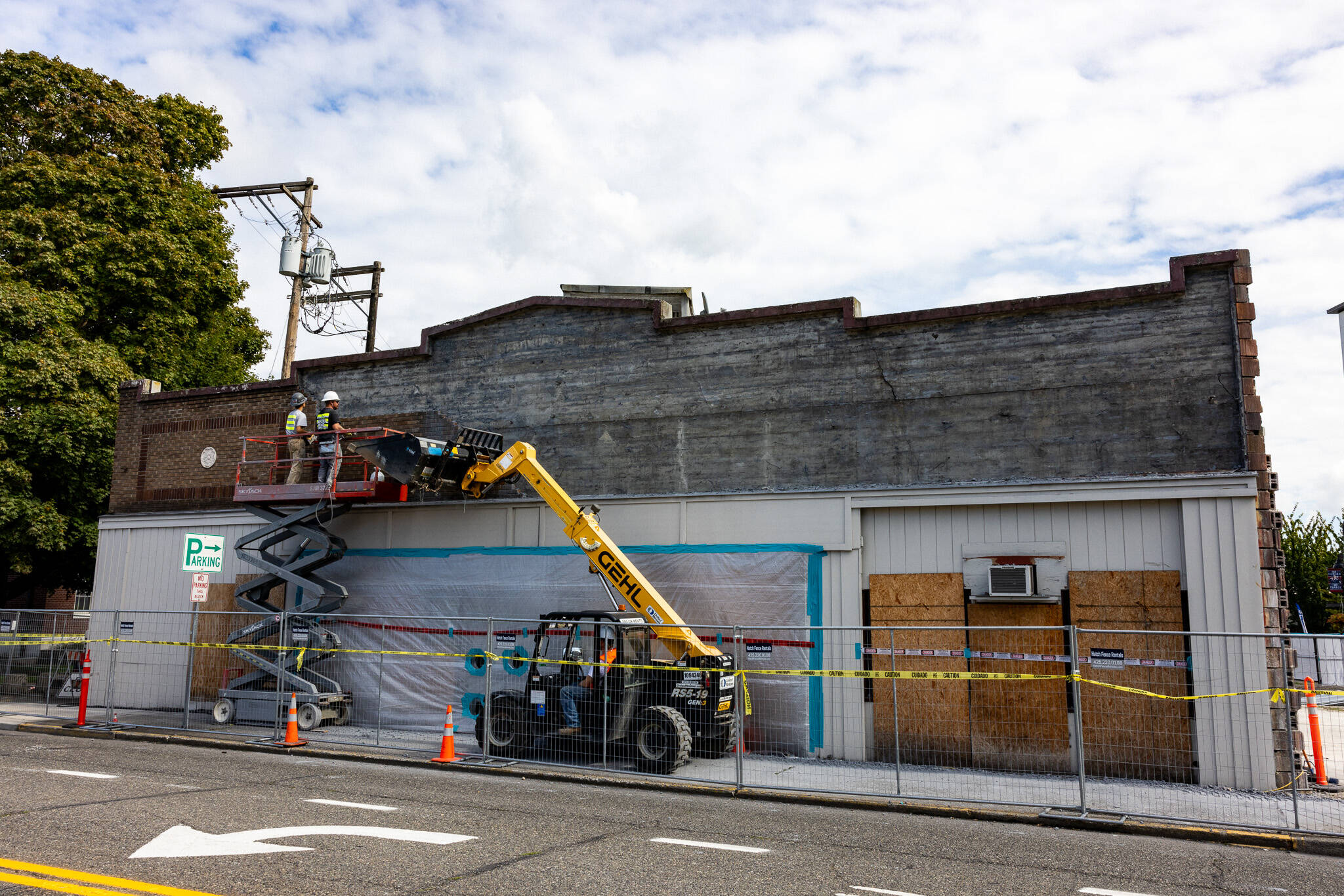 Early drawings of the future complex envision a two-story theater extending to the corner of East Main and Auburn Avenue, about 25 percent larger than the old theater with additional seating. Hired by the city, the company Rivers Edge Environmental Services is handling demolition.