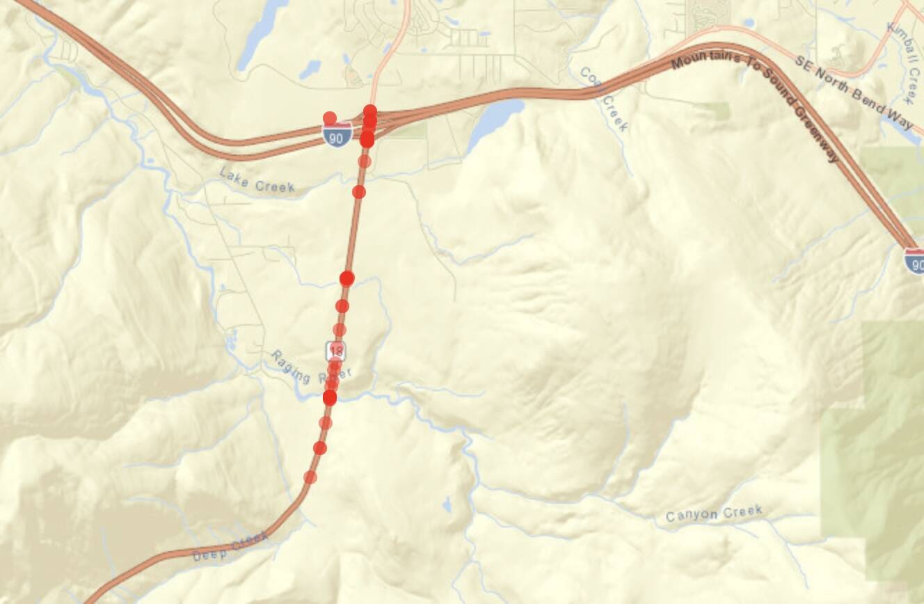 Currently, in 2024, three collisions have taken place in this stretch of SR 18. Two out of the three were located near the Raging River bridge.