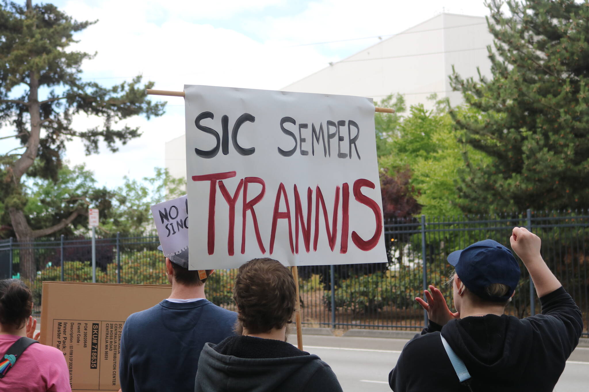 Over the course of the afternoon, the protest grew and grew, with the crowd reciting different chants, one speaker blasting “We’re Not Gonna Take It” by Twisted Sister and a never-ending stream of honks from passing cars, with one woman pulling up to the crowd and yelling, “We’ll join you as soon as we find a parking spot!”