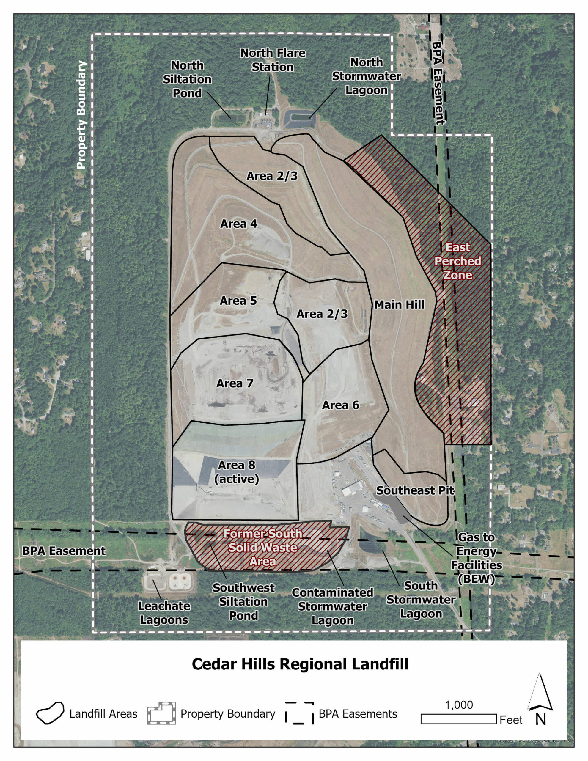 Construction is expected to be completed in mid-2025, and once Cell 8 is filled to a height of 800 feet (with 30 feet sealant of dirt on top), work will begin to fill the last remaining section of Cedar Hills Landfill.